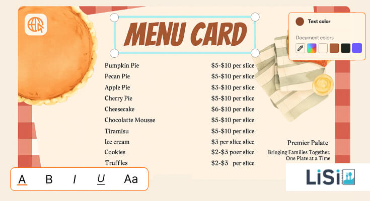 Time is money in the restaurant industry. Furthermore, the ability to design menu cards quickly gives you a competitive advantage when launching new items, updating prices, or creating seasonal specials. Additionally, fast design turnaround means you can respond immediately to market trends and customer feedback.
